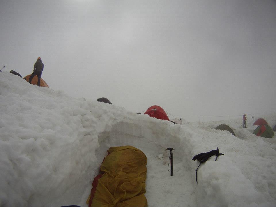 I slept to the left of the new refuge with the other cheap skates in this shallow grave that someone who climbed a day before had left me!