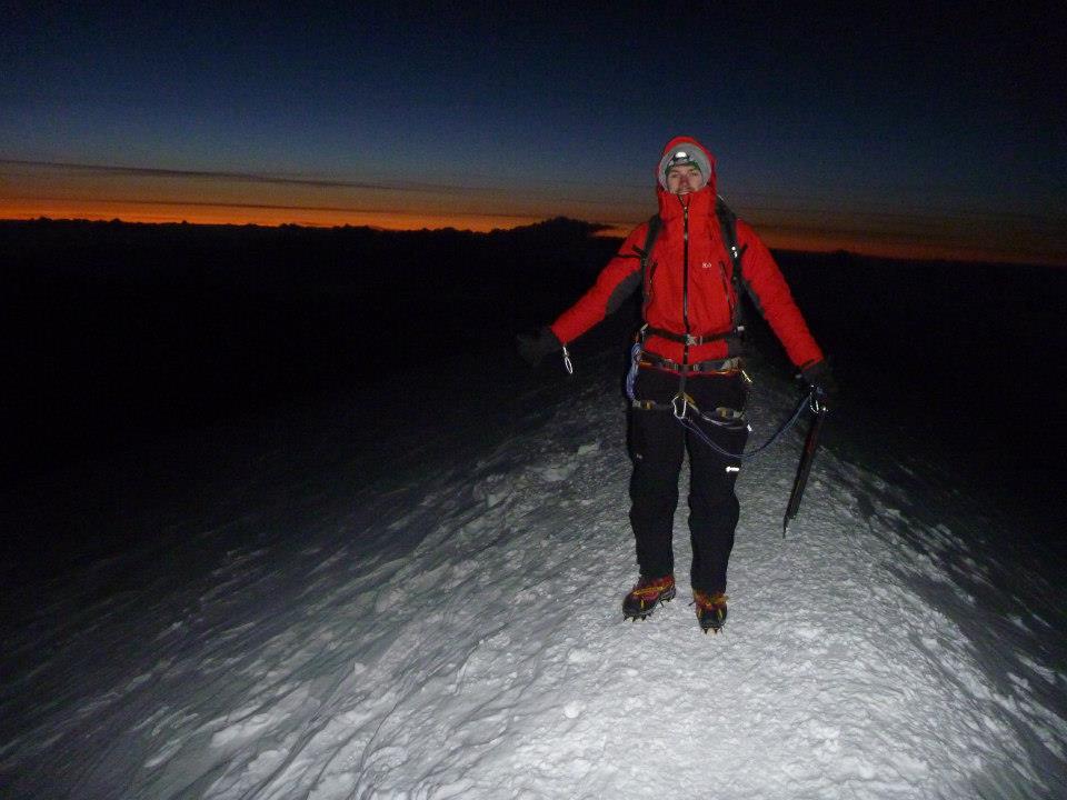 I had made it! Summit at 5:30am after some very slow climbing towards the top. It was freezing and very windy! I had my spare pair of socks over my gloves and didn’t want to take them off. I waited until I saw the first person on top with me and asked him to take a photo as I didn’t have the strength to work self timer, this was a good 15 minutes after I got there! The sun was coming up over the Alps but the flash still came on!