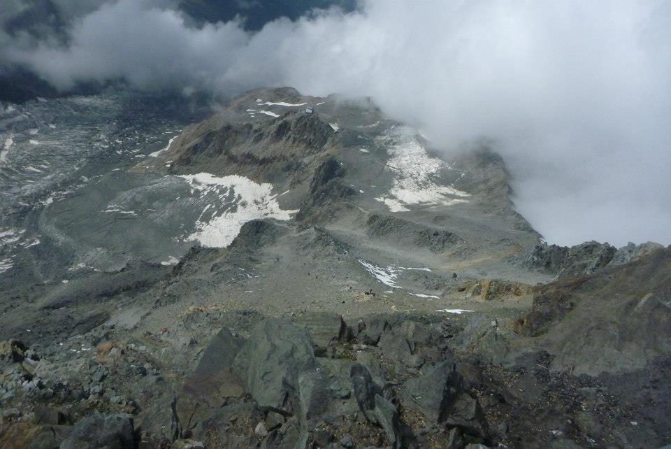Chamonix looks very small from up here. Crossing the Grand Couloir on the ridge can be quite dangerous as there is often a lot of rock fall, I didn’t see any but I must have been lucky. I was straight across and carried on up the scramble to the refuge on the ridge.