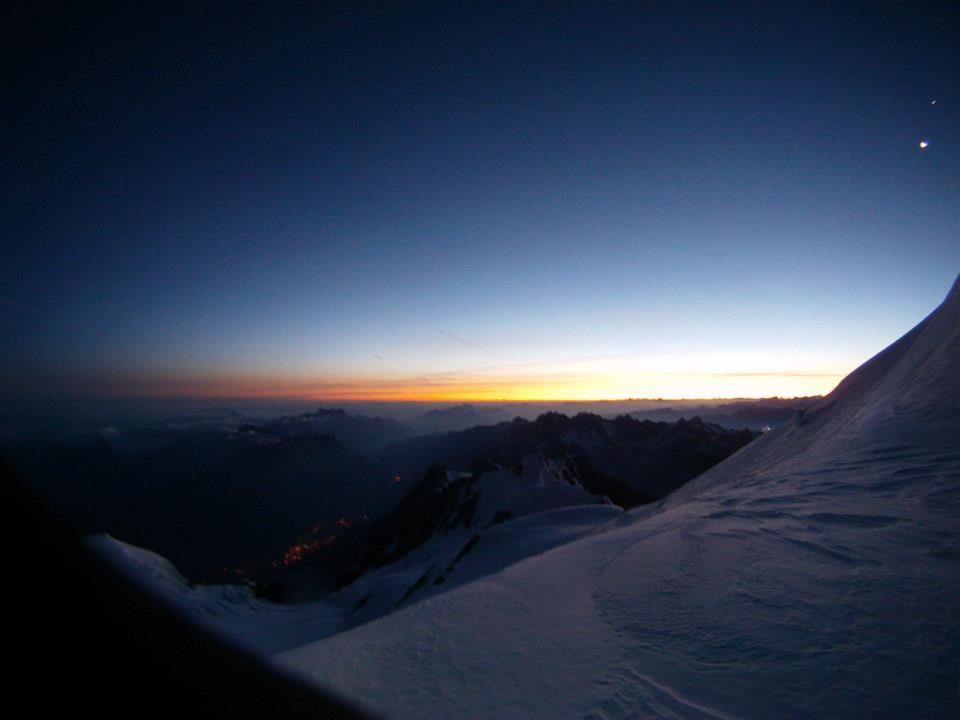 Just above the Vallot hut on my return I snapped this pic of sunrise. it really captures Alpine climbing and early mornings up high!