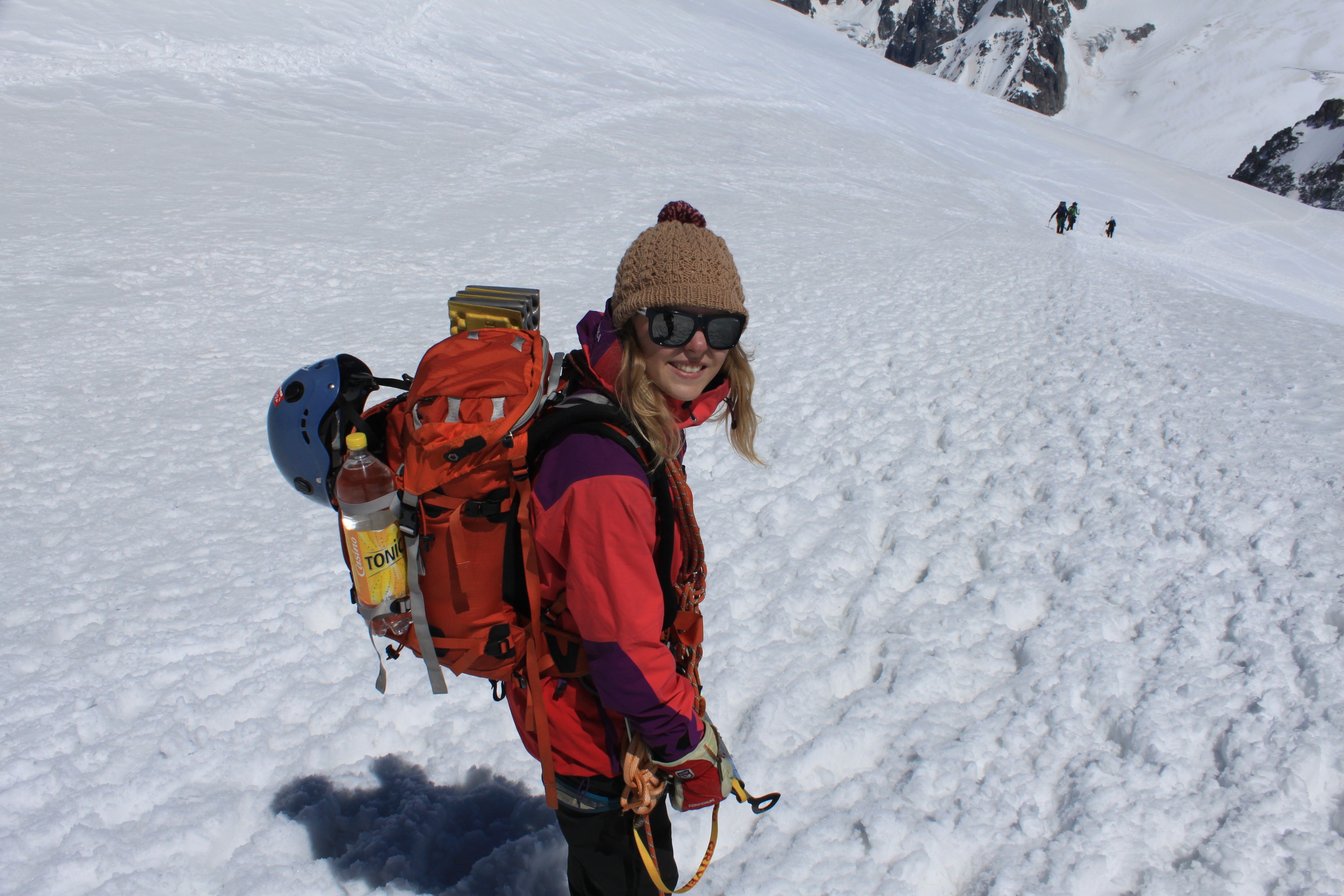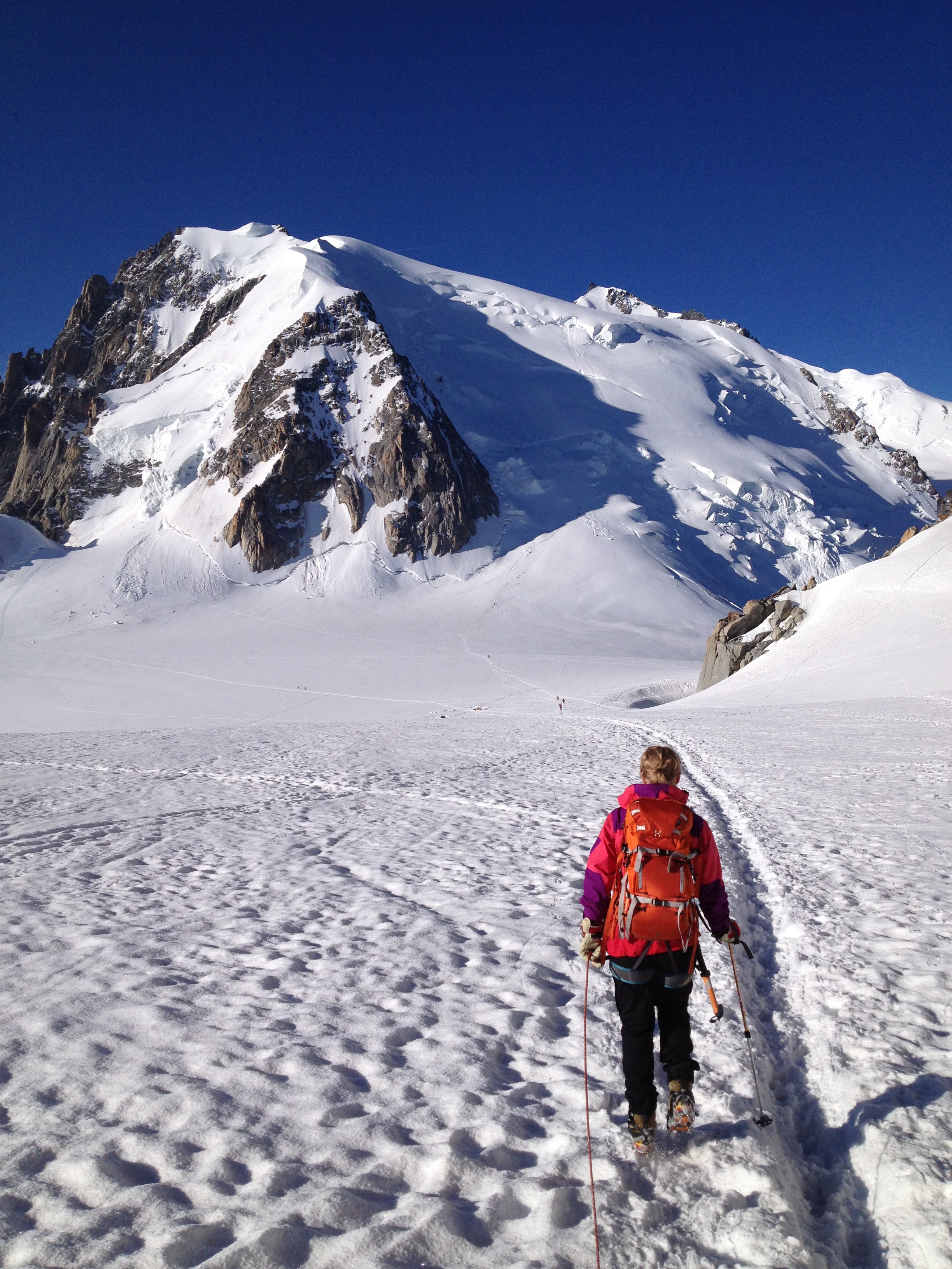 I was taking my Girlfriend Katariina on her first alpine adventure and we were aiming to do the Point Lachenal Traverse then sleeping up high then doing the Cosmiques arete first thing in the morning so we had it to ourselves.