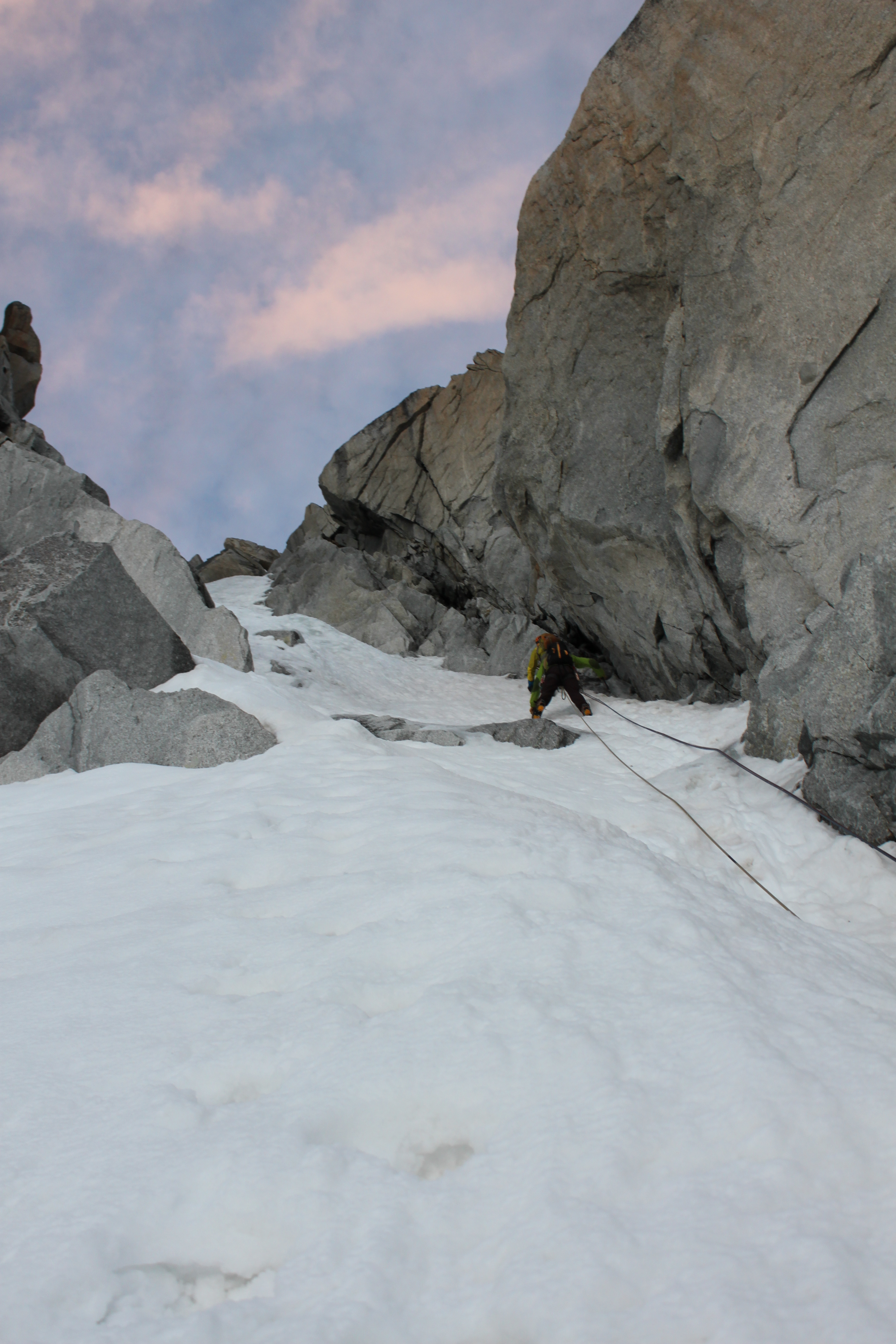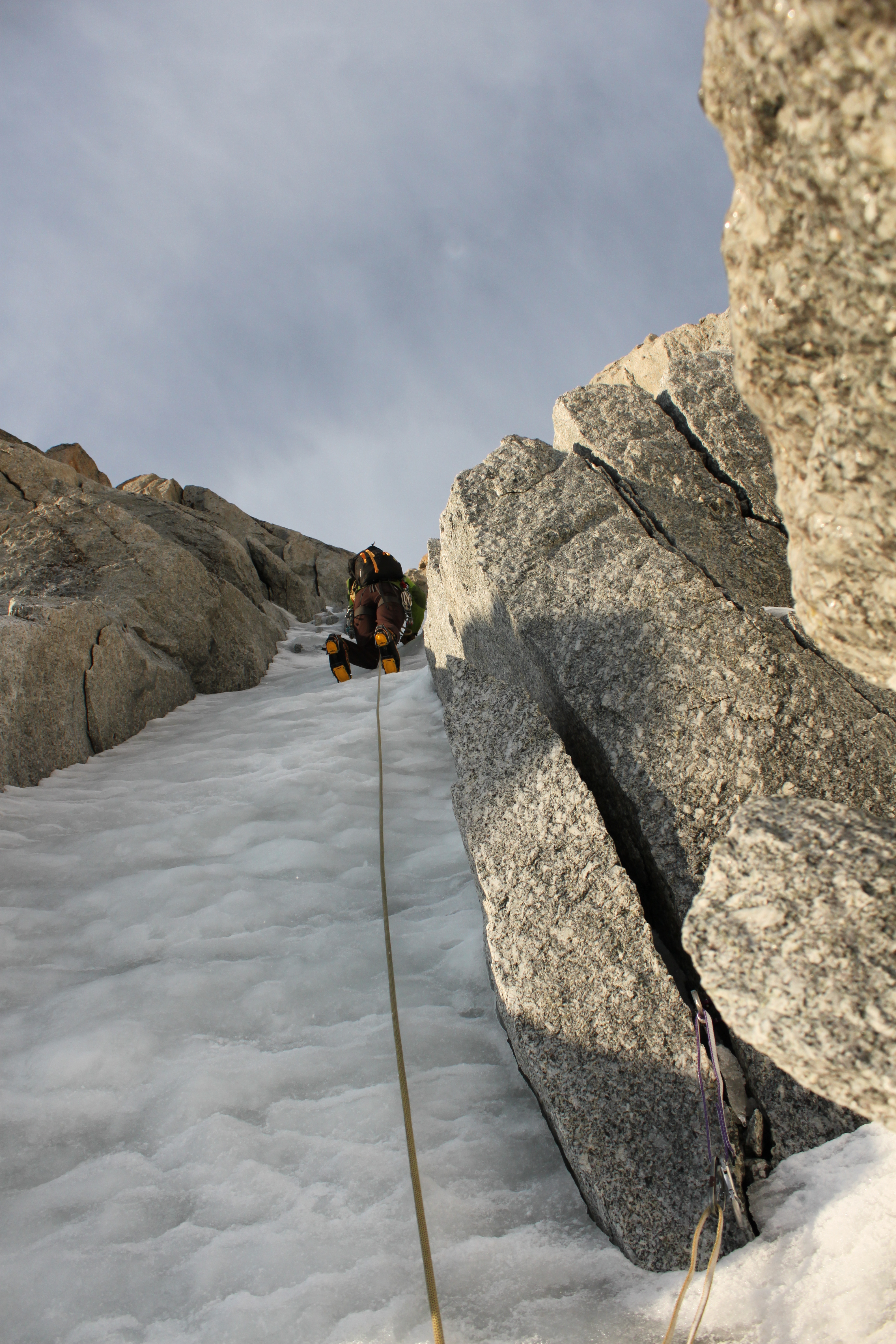 We were along side the other team at this point as they decided to get out onto the upper snow field as soon as they could, leaving us to have the whole left hand ice couloir to ourselves.