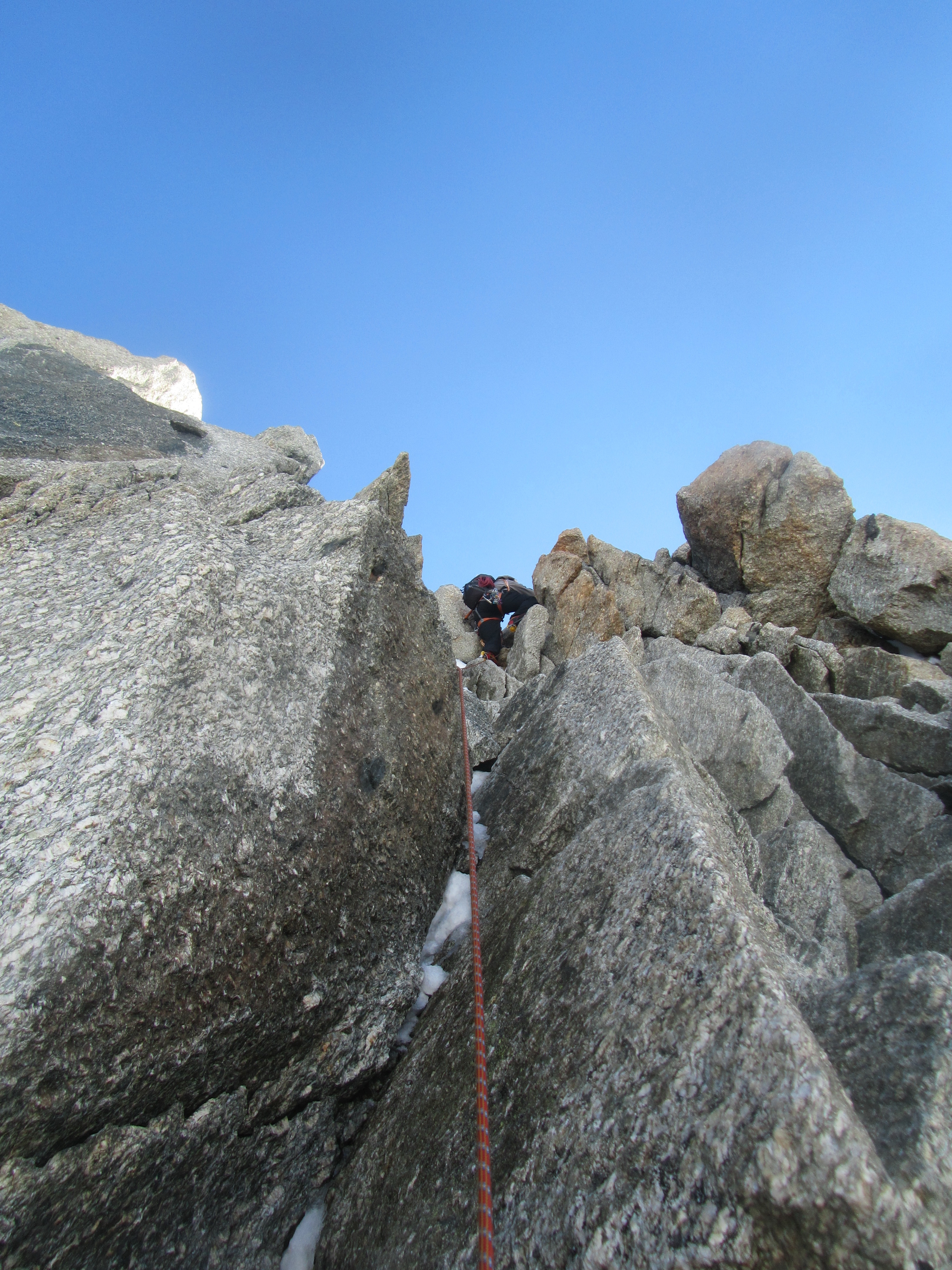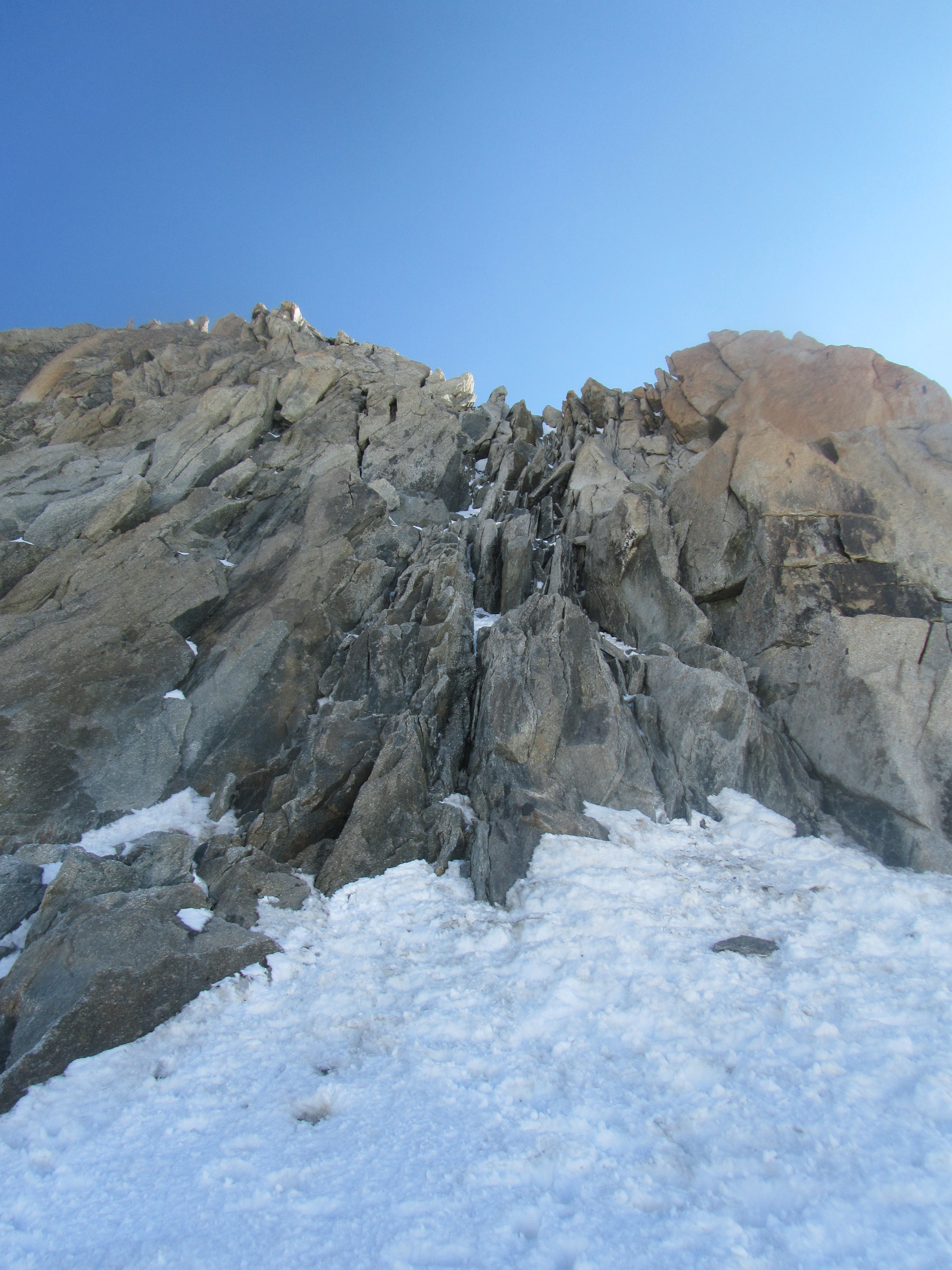 On the first snow ridge up to the first scramble.