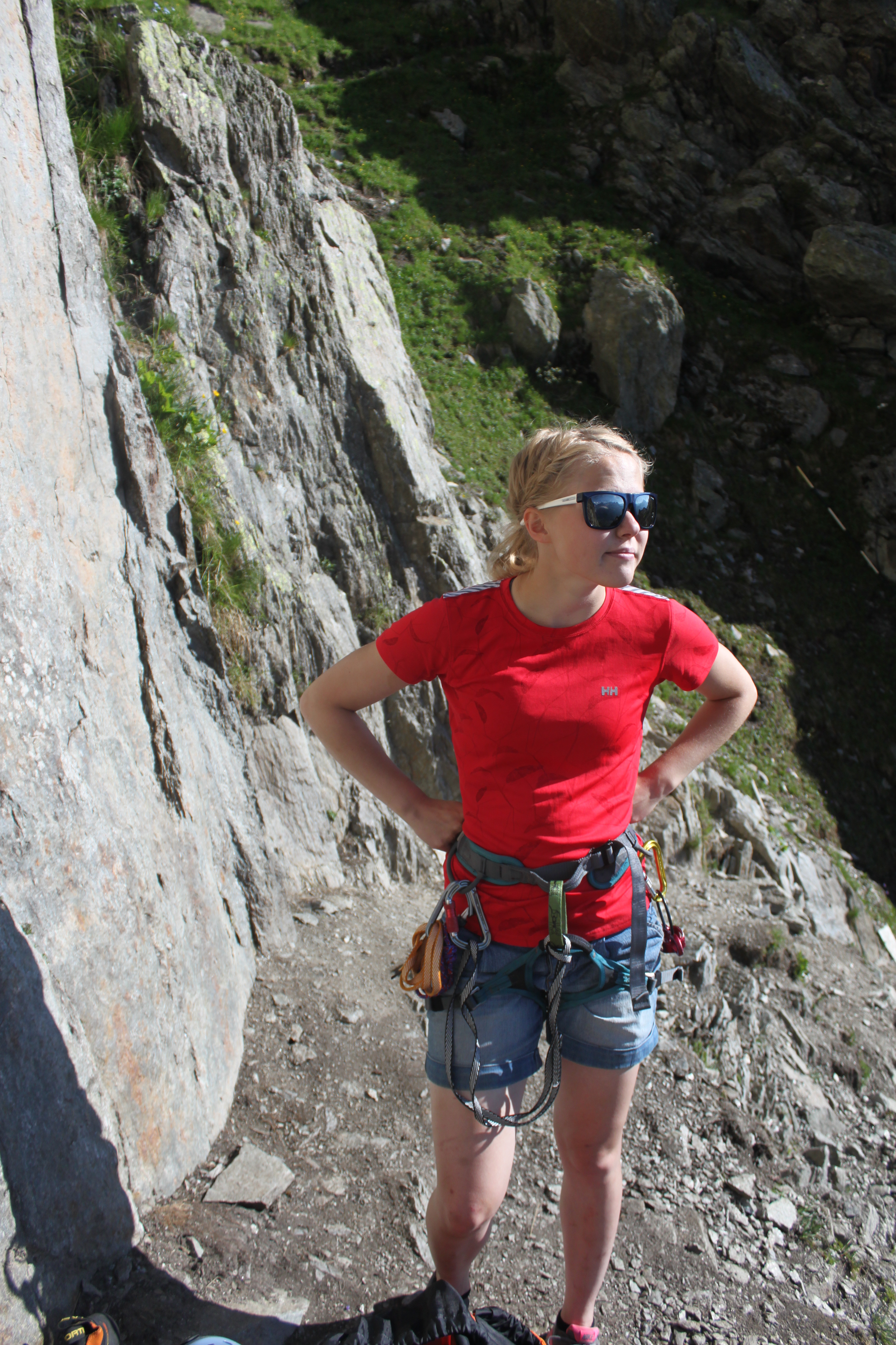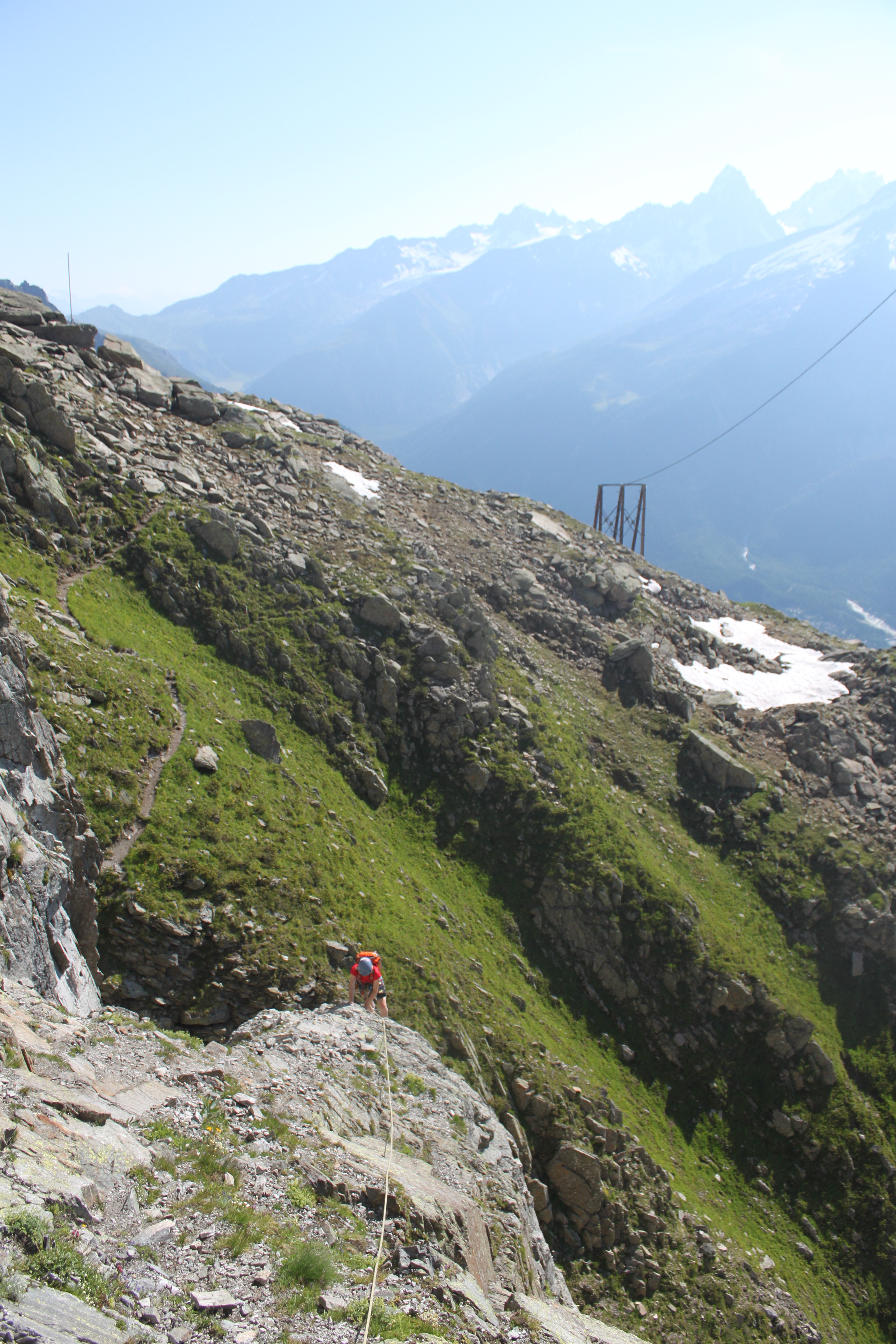 With a sunny sunday off work Me and Katariina headed up the top of Brevent at first bin 8:15, so that we could avoid the crowds and the hot sun. We arrived at the bottom of the route just before 9am and started up the first pitch, 6a slab.