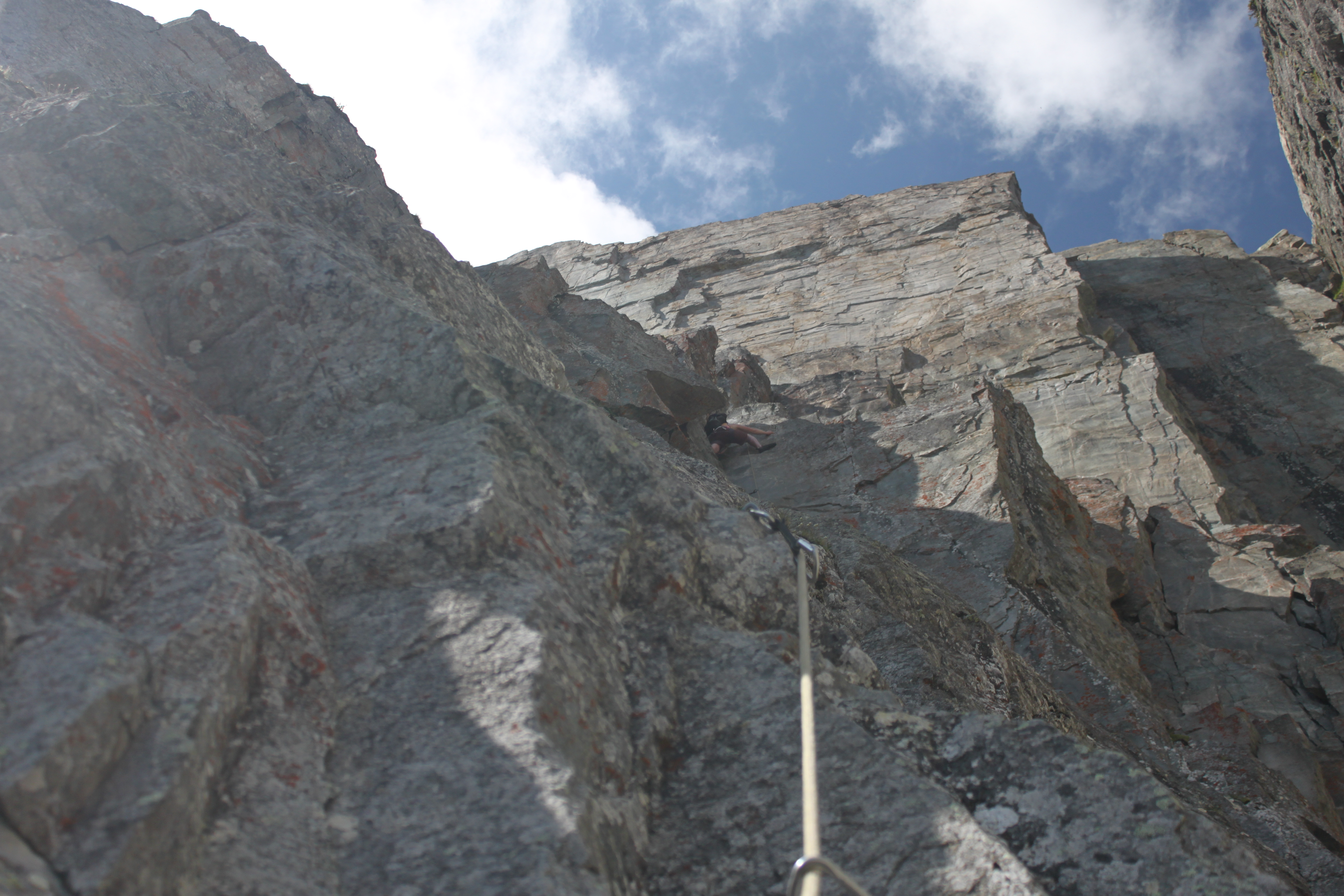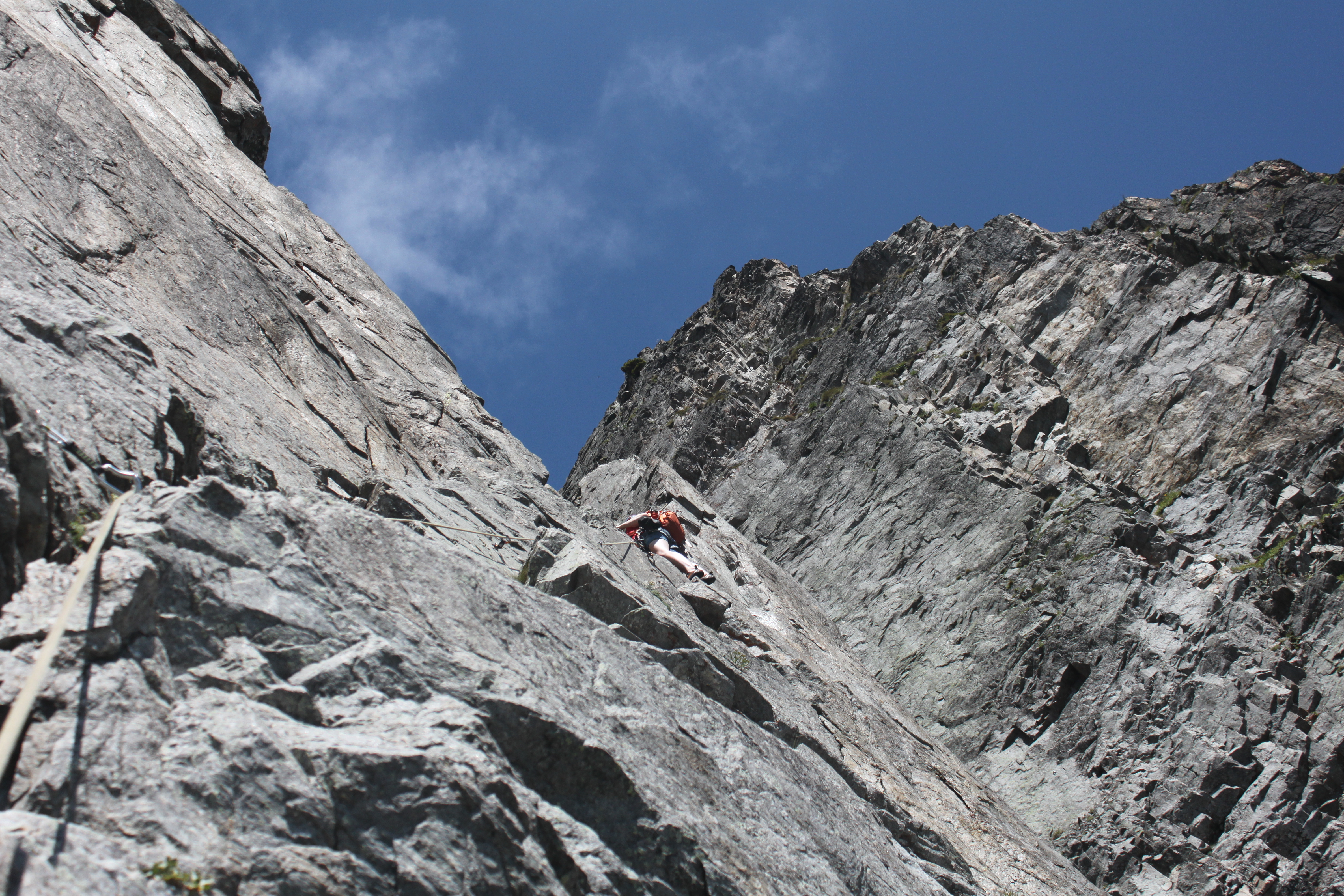 Me leading the 4th crux pitch, and Kat coming up second.