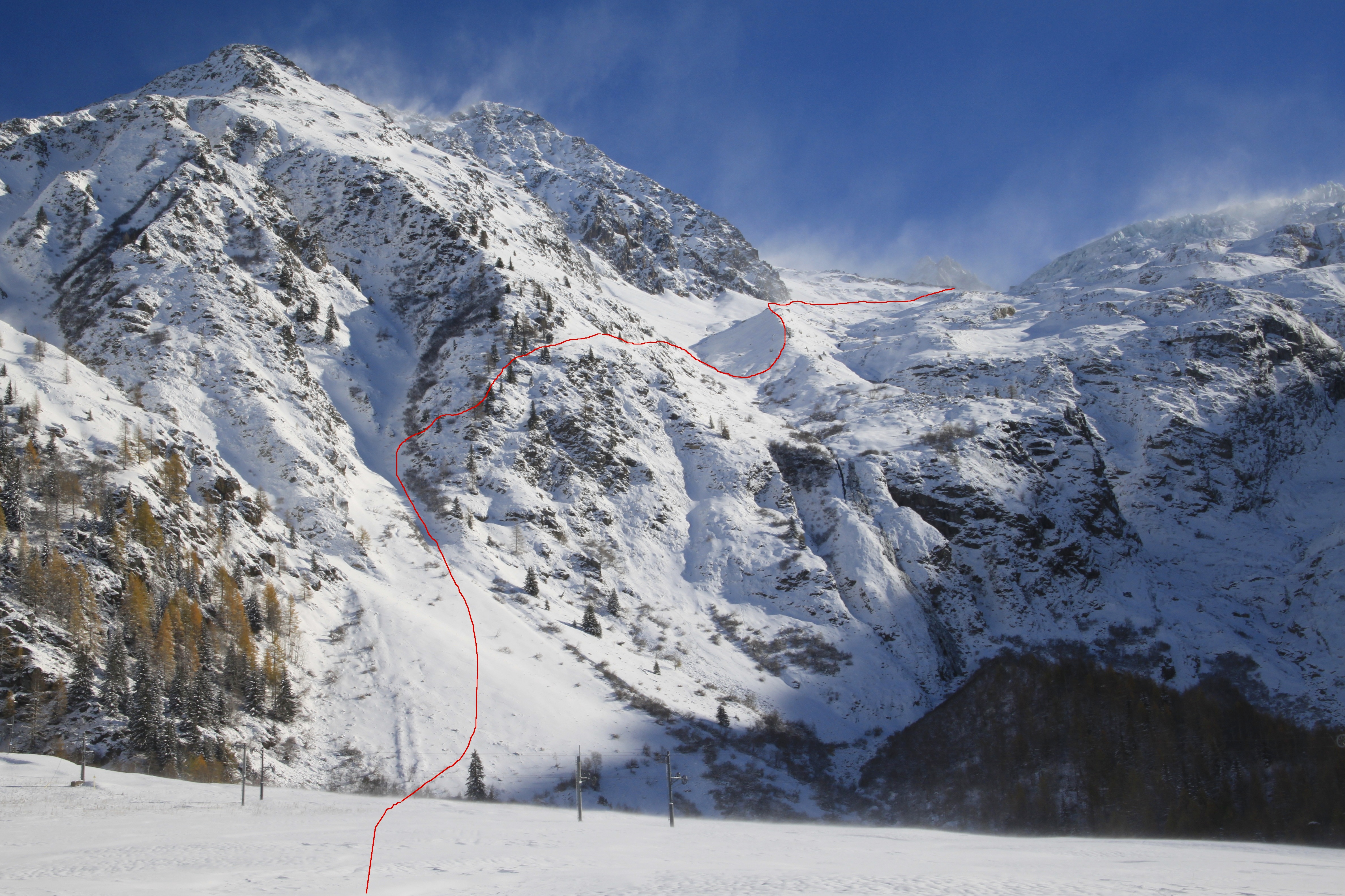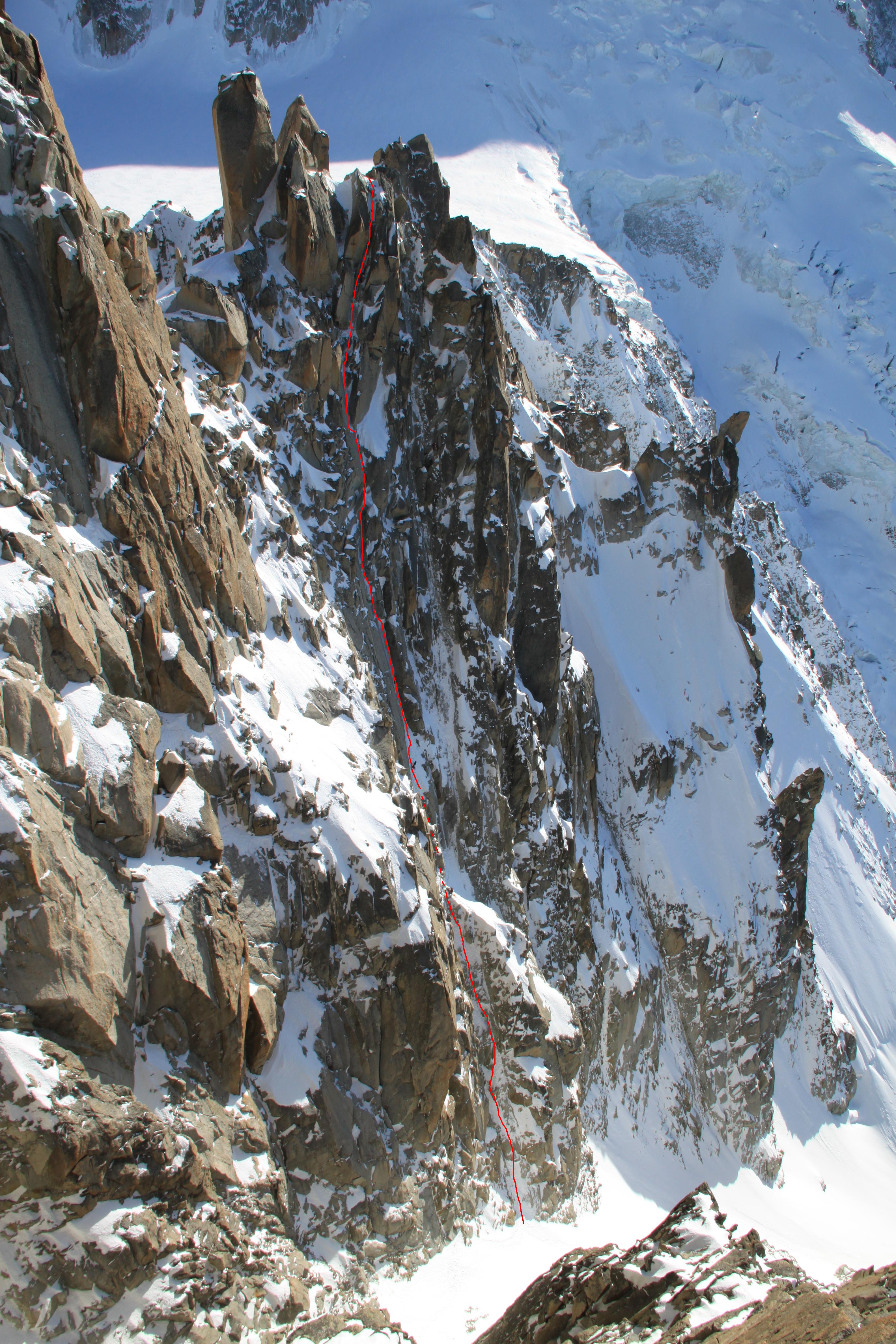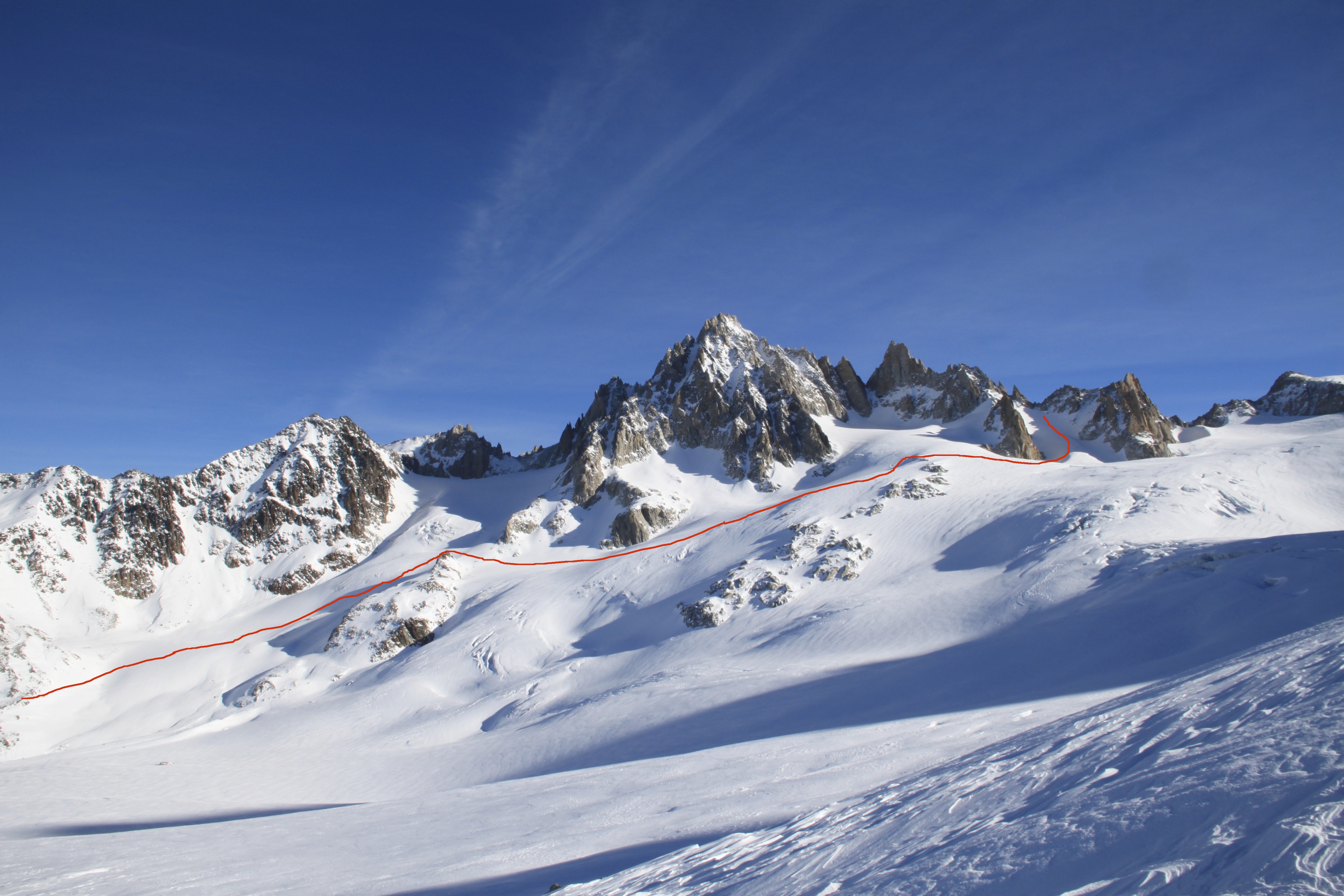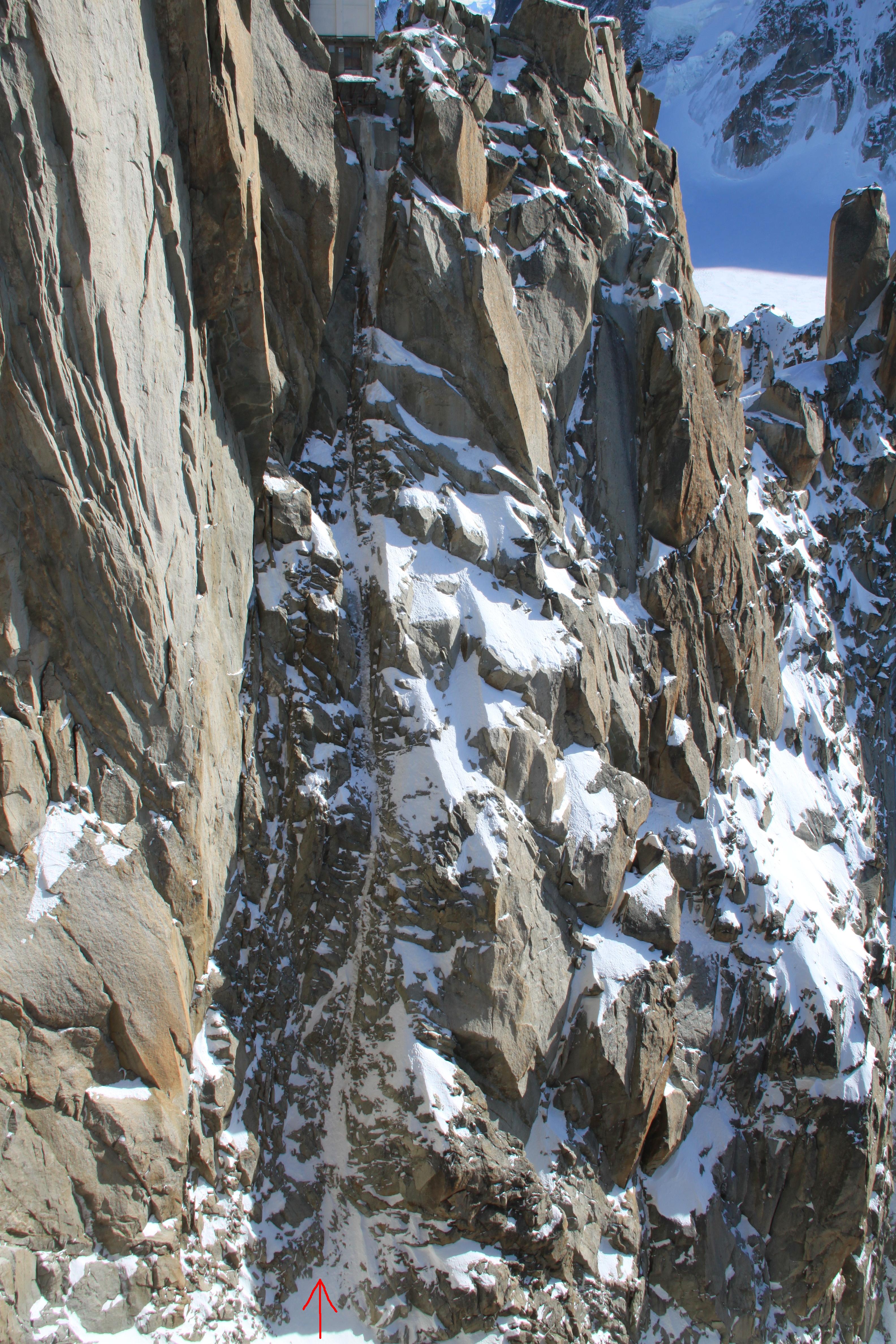 Here you can see the Table Couloir and the rocks in the middle of the line.