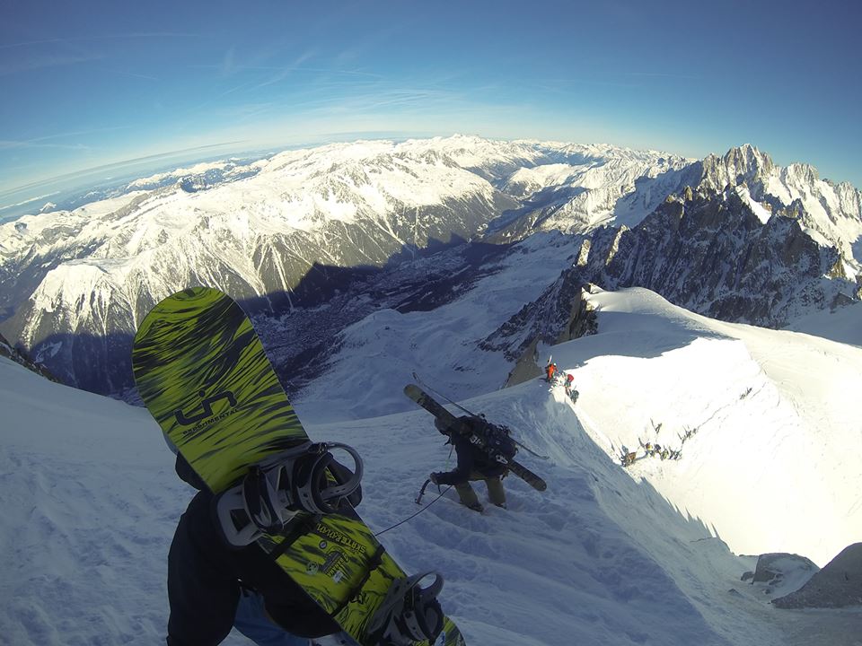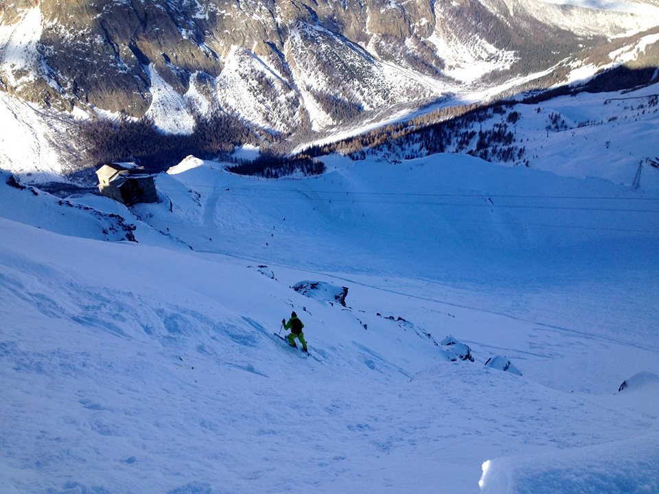 Waking up to a beautiful sunrise in Chamonix is one of the many reasons people find it hard to leave here! Another reason is the fact that you have some of the best skiing available in the world right on your door step. Making the most of my last day off work I was heading to Allys house bright and early this morning to see what we were going to do. I had one thing in my mind, Cunningham Couloir on the Aiguille du Midi west face. This has been on my list for a while and its only now that I feel confident enough in my skiing ability to be able to get down it in one piece. Ally was less keen on this route. After speaking to his house mate, Dave Searle who skied the Glacier Rond and Rectiligne yesterday ( read about it here), he knew that it would be a shit storm trying to negotiate the Bossons Glacier if the clouds came in like the forecast said it would!