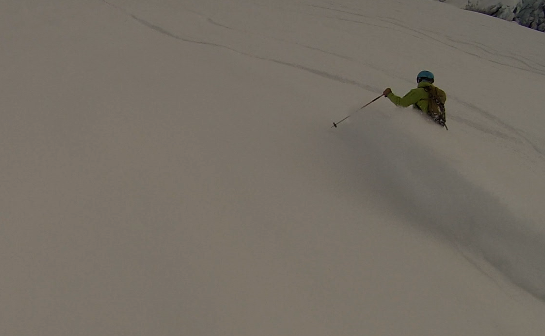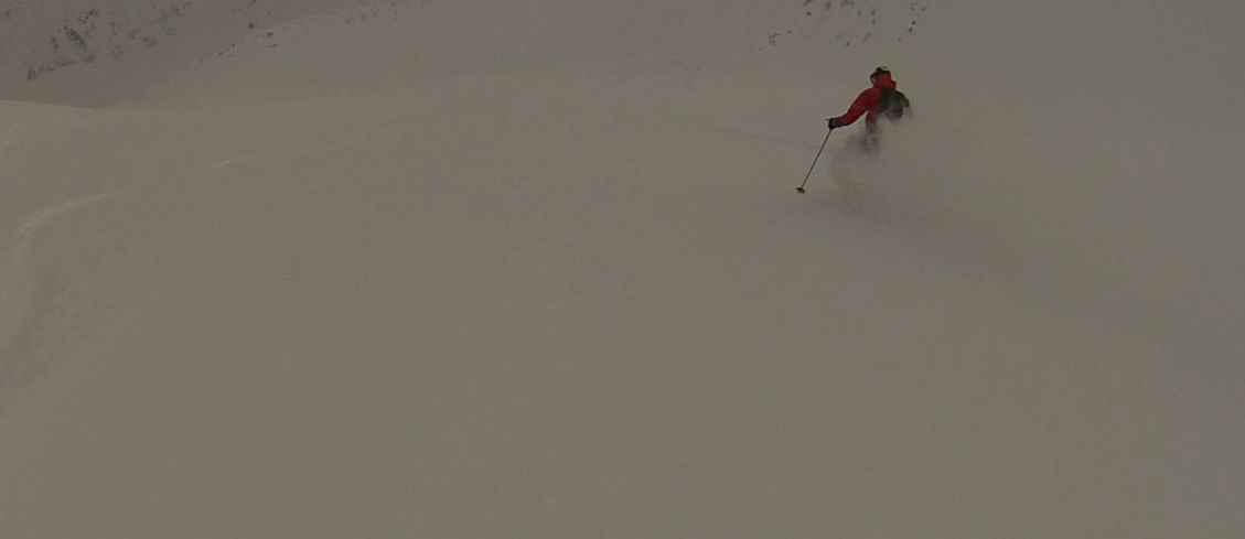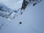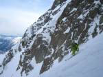 We took turns leading, half each, so we could get a few photos. The snow was still pretty soft but well tracked out. There was the occasional area of untracked powder on the sides that was good fun. After completing the couloir we were both pleased to have skied it reasonably well and saw it as training for when conditions are not perfect. Its nice to know where it is now for future powder days, maybe one day we will get it like Dave did yesterday.