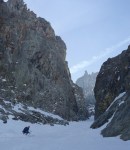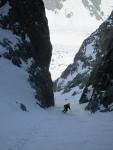 The Gervasutti Couloir is a west facing 200m line that has a relatively constant gradient of 50’. My first 5.2. I had been hearing reports of people skiing it and getting good conditions despite the severe lack of snow we are having here in Chamonix. Skiing a lot recently with James Sleigh he was my first choice of partner for this classic steep descent. Stopping at his house at 7:30 he was not feeling good and decided he wasn’t going to come. Whether you call it stupidity, commitment or a just a massive love of skiing I headed into the mountains alone, aware of the risks and seeking the rewards.
