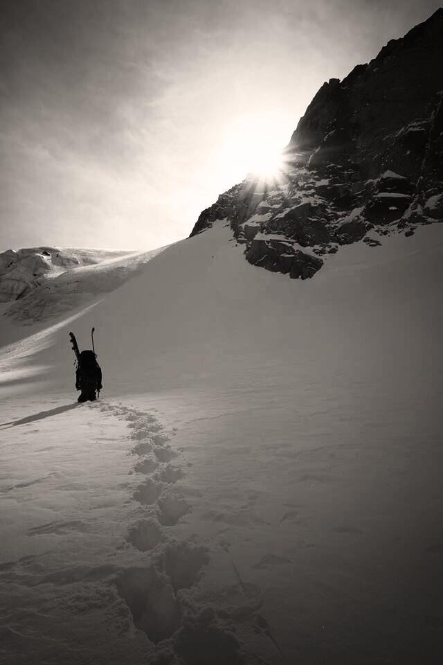 Monday. A relentless day boot packing on the Nantillions Glacier, failing once again to ski the Spencer Couloir. But at least I came away with one good photo.